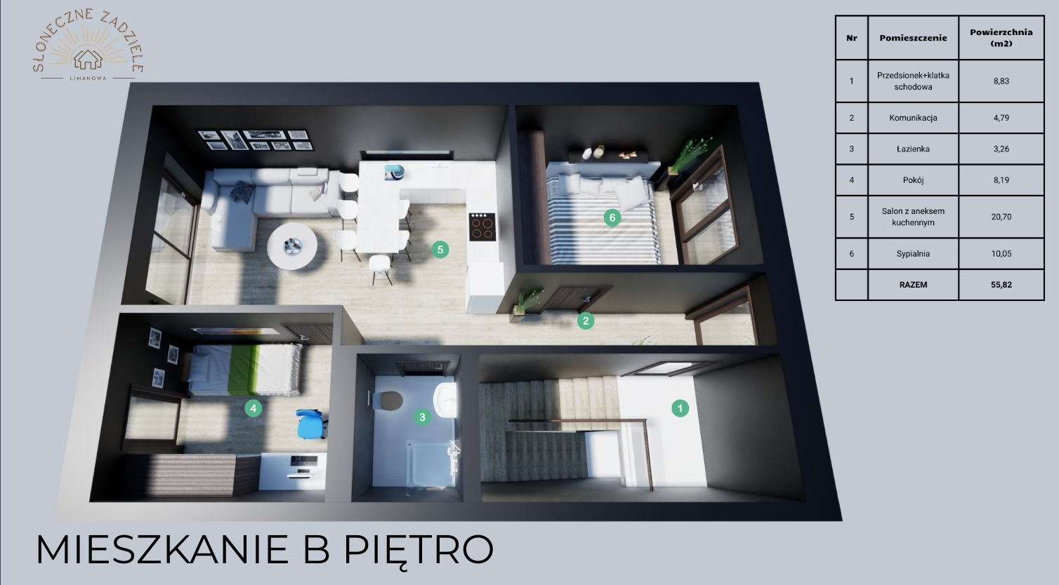 4 B Piętro 55,82 m2 419 900 PLN WOLNE